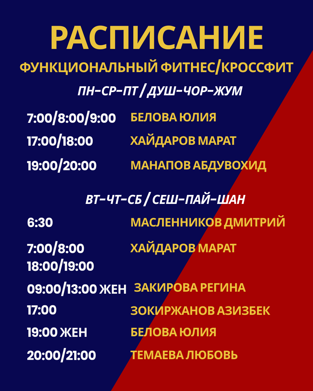 training schedule